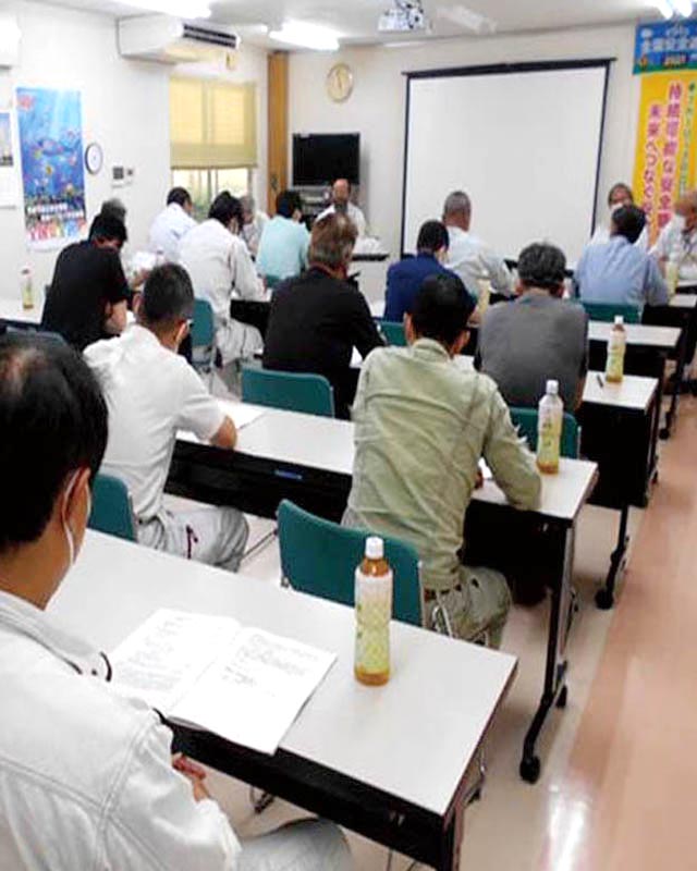 安全衛生管理室では年間を通して協力企業のスタッフを招いて共同安全教育の機会を設けています。ここは現場管理者や協力企業の技術スタッフが共に学ぶ場です。言葉を交わし現場での危険を未然に防止します。